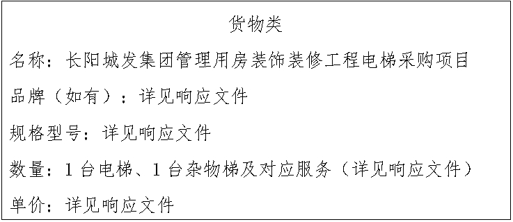 二、项目名称:长阳城发集团管理用房装饰装修工程电梯采购项目