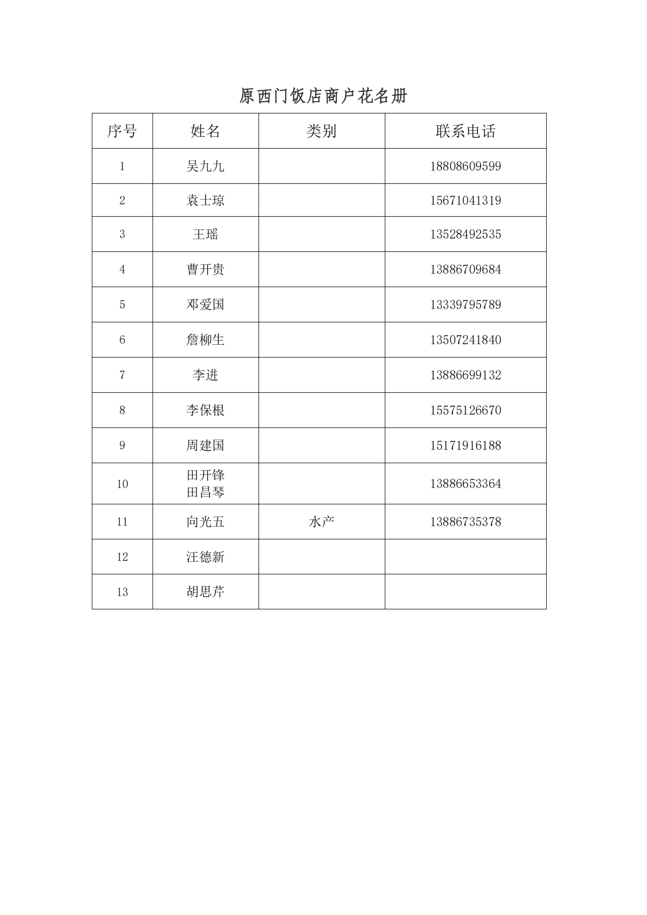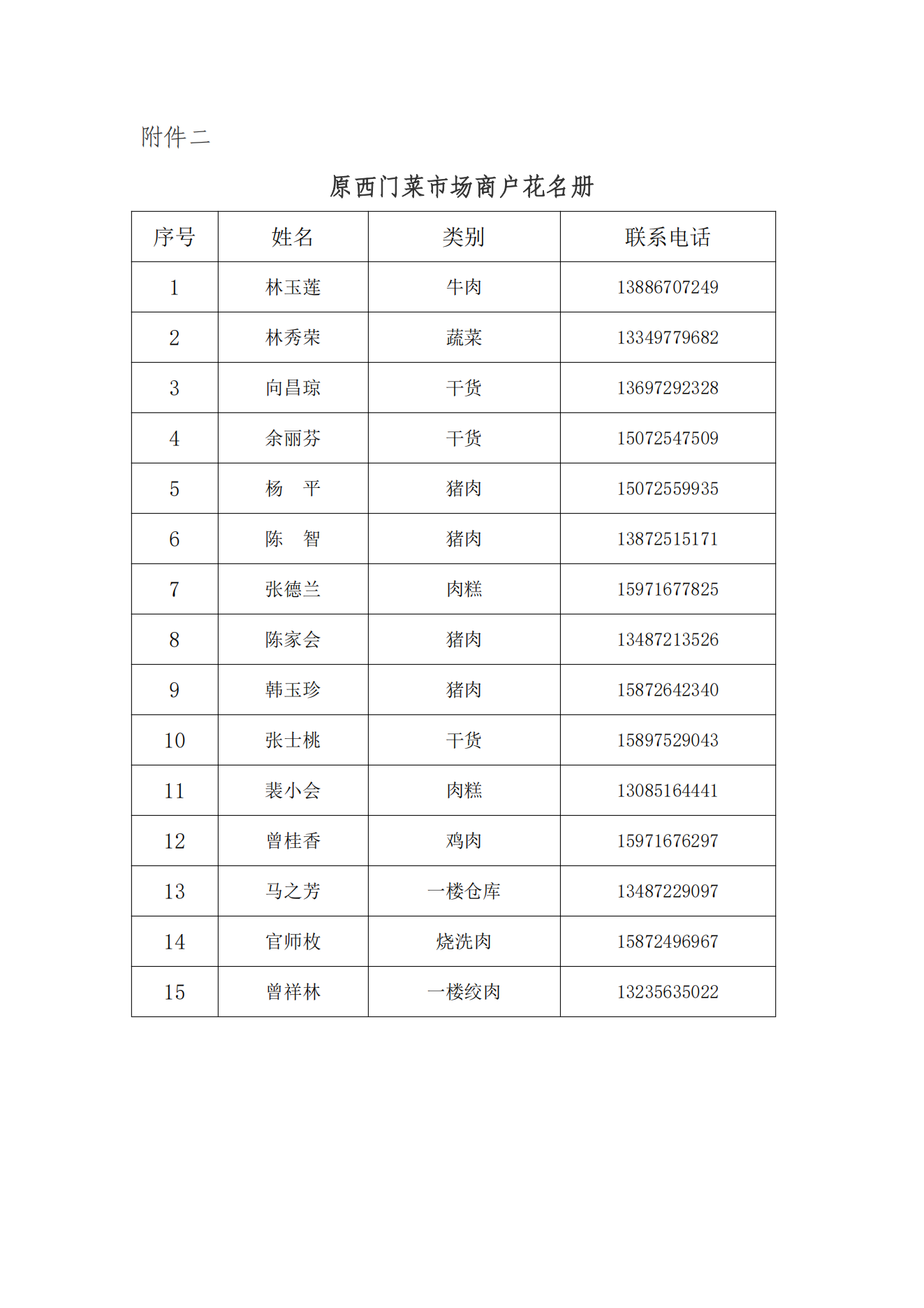 注:原西门菜市场和西门饭店商户清单见附件二。