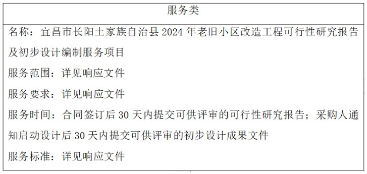 二、项目名称:宜昌市长阳土家族自治县2024年老旧小区改造工程可行性研究报告及初步设计编制服务项目
