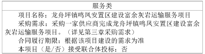 一、项目名称:龙舟坪镇鸣凤安置区建设富余灰岩运输服务项目