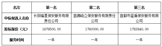 长阳城市智慧停车体系项目(一期)路内泊位管理服务采购项目于2020年8月18日上午09时30分在湖北恒晟工程咨询有限公司(龙舟坪镇龙舟大道25号(清江瑞景一单元503室))公开开标,经评标委员会评审,评标结果如下: