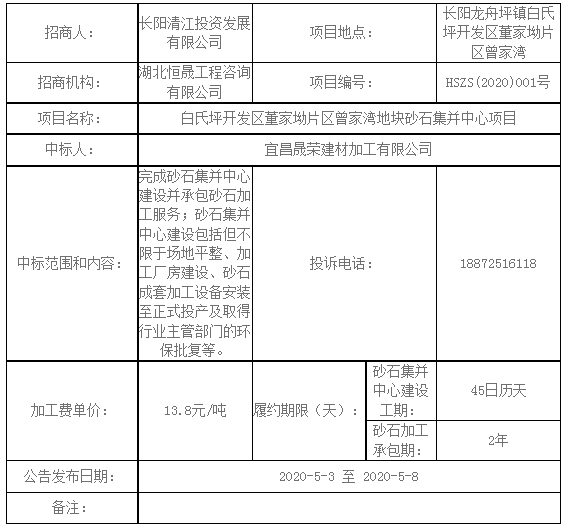 白氏坪开发区董家坳片区曾家湾地块砂石集并中心项目中标结果公告