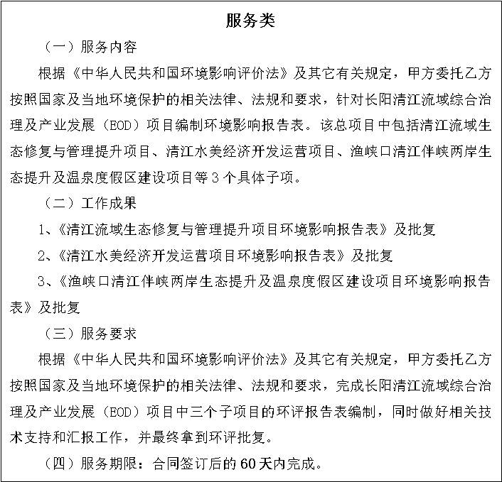 一、项目名称:长阳清江流域综合治理及产业发展(EOD)项目环境影响评价服务