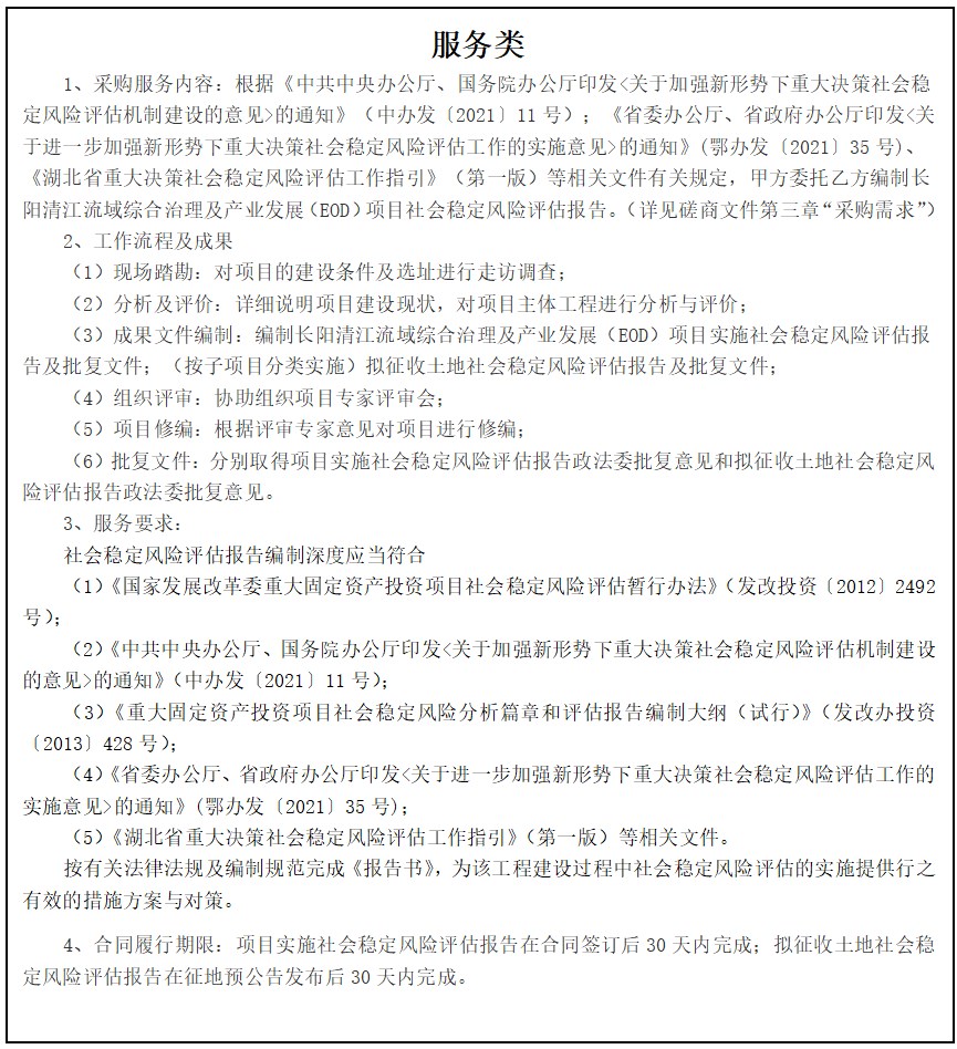 二、项目名称:长阳清江流域综合治理及产业发展(EOD)项目社会稳定性风险评估服务