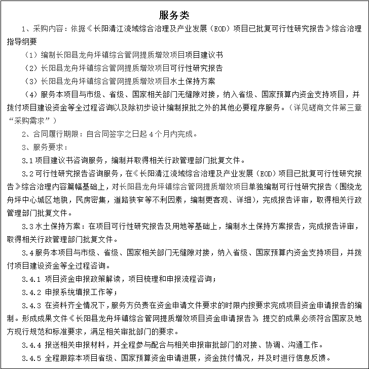 二、项目名称:长阳县龙舟坪镇综合管网提质增效项目前期咨询服务